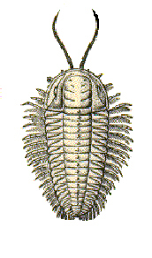 Triarthrus is an Ordovician age trilobite about 19 mm long which was widespread over North America. This arthropod lived as a scavenger or predator, and like a crab had segmented legs and a pair of pincers in front of the mouth and jaws which moved transverly. An example of a Triarthrus can also be seen in the environmental scene of the Billings Formation. A lot of these fossils that have been preserved in the Billings Formation shales are pyritized due to the anoxic conditions of the seas during preservation.