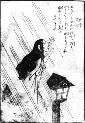 もろこし巫山の神女は、朝には雲となり、夕には雨となるとかや。 雨女もかかる類のものなりや。