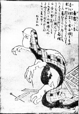普化禅宗を虚無僧と言ふ。虚無空じゃくをむねとして、いたるところ 薦むしろに座してもたれりとするゆへ、薦僧とも言ふよし。職人づくし 歌合に、暮露暮露ともよめれば、かの世捨人のきふるせるぼろぶとん にやと、夢の中におもひぬ。