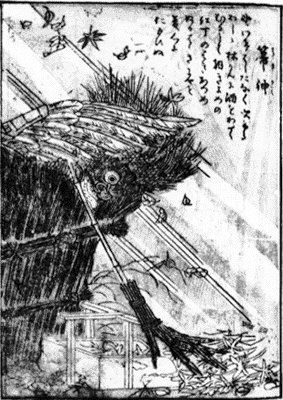 「徒然草」の第十九段にある「とりあつめたる事は秋のみぞ多かる。 また、野分のあしたこそをかしけれ」というあたりからの発想 でしょうか。落ち葉を掃き浄める箒がなぜ箒神になるのかは よくわかりません。