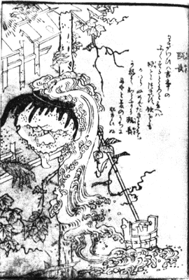 瓶長は古くなった瓶の妖怪で、目や鼻を持って水を自由にあやつる