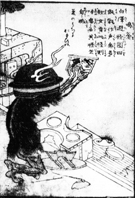 石燕の画は、「百鬼夜行絵巻」(真珠庵蔵)の釜の妖怪に