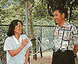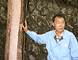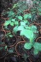柿の木2世の苗木を園児とともに育てている園長先生と