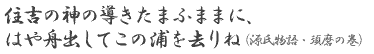 ![]() "As the god of Sumiyoshi guides you in the dream, set sail and depart this bay at once." (Chapter of Suma, "the Tale of Genji") |