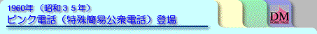 昭和34年(1959)、赤電話機、青電話機に加えて新しく「特殊簡易公衆電話」制度が施行され、通称ピンク電話と呼ばれる公衆電話機が登場しました。この電話機は、一般加入電話を公衆電話としても利用できるようにしたものでアパート、病院、喫茶店など、比較的人の出入りの多い場所にお客様サービス用として設けられました。純然たる公衆電話ではなく、加入者の希望により、建物の内部に設置されるなどの性格をもっていました。