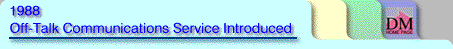On August 3, 1988, a new 'Off-Talk Service' is introduced, aimed at making more efficient use of subscribers' telephone lines. Off-talk communications service utilizes customers' unused phone lines to transmit audio information from information centers (such as municipal governments, agricultural cooperatives, general businesses), and allows users a choice of four information channels from a menu of such information centers. The off-talk service is automatically interrupted to give priority to incoming and outgoing telephone calls at any time.