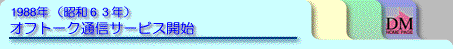 昭和63年(1988)8月3日、加入電話等契約者回線の有効利用などを目的に、オフトーク通信サービスが開始されました。オフトーク通信サービスとは、契約者回線の未使用時間を利用して、音声情報などを情報提供センター(市長村、農協、一般企業などの運営)から提供するサービスで、契約者はセンターの提供メニューに応じて4チャンネルまでの選択が可能です。利用中に一般の通話の発着信があった場合は、オフ・トーク通信は切断され、通話が優先します。