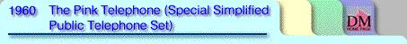 In 1959 the public "red phone" and "blue phone" are joined by a new service, the 'Special Simplified Public Telephone.' Nicknamed the "pink phone," these new public phones enable ordinary subscriber lines to be used as public telephones, and are installed as a service to customers in high-traffic areas such as apartment buildings, hospitals and coffee shops. Not purely public telephones, the "pink phones" can be placed inside buildings in any location the subscriber desires.