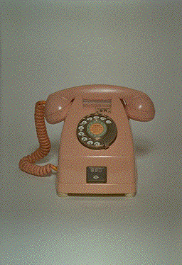 昭和34年(1959)、赤電話機、青電話機に加えて新しく「特殊簡易公衆電話」制度が施行され、通称ピンク電話と呼ばれる公衆電話機が登場しました。この電話機は、一般加入電話を公衆電話としても利用できるようにしたものでアパート、病院、喫茶店など、比較的人の出入りの多い場所にお客様サービス用として設けられました。純然たる公衆電話ではなく、加入者の希望により、建物の内部に設置されるなどの性格をもっていました。