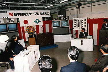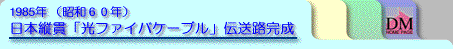 日本で初めて超高純度の光ファイバ通信が公衆通信網の開発に成功したのが、昭和55年(1980)9月でした。それから5年後の昭和60年(1985)2月、日本縦貫光ファイバケーブルルートが完成し、北海道旭川から九州鹿児島まで太平洋側の主要都市間(全長41000Km)が光ファイバのケーブルで結ばれました。光ファイバで送るデジタル通信は、高い周波数の信号を80Km以上も増幅せずに送ることができ、漏話、電磁誘導などの影響を受けずに信頼性の高い通信ができます。