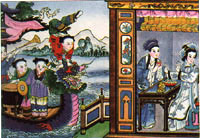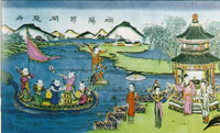 彩旂夾岸照蛟室, 羅襪淩波呈水嬉。