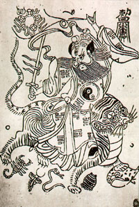 宋 人 的 巧 思 還 不 僅 限 於 此 。 同 樣 是 禳 毒 的 菖 蒲 及 艾 草 , 他 們 也 會 加 點 花 樣 , 使 它 的 外 形 藝 術 化 。 吳 自 牧 的 《 夢 梁 錄 》 ( 序 於 一 二 七 四 年 ) 卷 三 記 載 南 宋 杭 州 的 端 午 : 「 以 艾 與 百 草 縛 成 天 師 , 懸 於 門 額 上 , 或 懸 虎 頭 白 澤 」 。 也 有 人 以 泥 塑 天 師 像 , 以 艾 為 頭 , 以 蒜 為 拳 , 懸 在 門 上 辟 邪 。 「 天 師 」 及 「 虎 」 是 未 朝 端 午 最 常 出 現 的 兩 種 形 象 , 因 為 他 們 的 外 形 威 猛 , 足 以 鎮 懾 邪 魔 外 道 。 同 時 也 可 看 出 道 教 對 端 午 習 俗 的 影 響 。