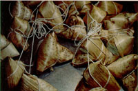 從 《 風 土 記 》 中 記 載 的 作 法 看 來 , 當 時 的 粽 子 是 以 黍 為 主 要 原 料 , 除 了 粟 子 以 外 , 不 添 加 其 餘 餡 料 。 但 在 講 究 飲 食 的 中 國 人 巧 手 經 營 之 下 , 今 天 我 所 能 看 到 的 粽 子 , 不 論 是 造 型 或 內 容 , 都 有 五 花 八 門 的 變 化 。