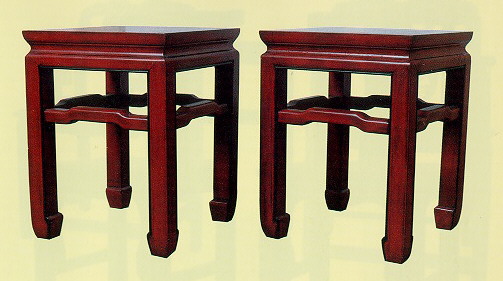 此 方 面 凳 採 四 面 平 、 有 束 腰 、 抱 肩 榫 、 羅 鍋 棖 、 馬 蹄 足 的 做 法 , 屬 仿 明 式 的 方 凳 。 形 較 大 、 比 例 厚 重 帶 有 閩 式 風 格 。 從 漆 飾 和 線 腳 塗 黑 來 看 , 應 是 新 製 或 翻 新 之 作 , 可 列 為 參 考 展 示 品 。