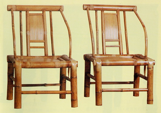 搭 臘 平 直 略 往 後 傾 斜 , 從 搭 腦 側 端 處 有 一 彎 竹 穿 過 座 面 側 邊 的 中 間 部 份 直 插 入 側 管 腳 根 , 一 來 加 強 靠 背 的 傾 斜 度 , 二 可 便 於 坐 者 側 身 起 坐 和 工 作 上 的 方 便 。