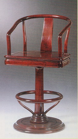 吧 台 椅 是 點 綴 現 代 都 會 生 活 應 運 而 生 的 新 類 型 家 具 , 製 者 試 著 將 傳 統 圈 背 椅 的 意 象 結 合 吧 台 椅 的 基 本 形 式 組 構 , 仍 秉 持 精 密 手 工 作 業 , 但 椅 座 與 支 腳 的 造 形 似 未 能 處 理 得 很 調 和 。 從 經 濟 的 層 面 來 看 , 以 上 好 的 紅 木 製 作 吧 台 椅 其 市 場 價 值 , 和 對 於 傳 統 家 具 視 為 可 傳 家 的 瑰 寶 的 心 境 , 兩 方 面 均 值 得 進 一 步 評 估 思 考 。