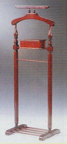 家 具 與 人 的 日 常 生 活 起 居 關 係 至 為 密 切 , 從 家 具 的 選 擇 具 體 而 微 的 表 露 文 化 涵 養 、 審 美 觀 念 、 生 活 態 度 , 和 社 會 經 濟 活 動 的 層 次 。 此 落 地 型 的 衣 架 頗 適 合 現 代 辦 公 室 的 陳 設 , 造 形 簡 潔 明 朗 , 以 鏇 車 為 唯 一 的 裝 飾 , 恰 如 其 份 而 不 玉 至 於 喧 鬧 , 其 意 象 源 自 於 傳 統 的 搭 衣 架 形 式 , 改 立 屏 為 直 式 立 柱 骨 架 , 改 搭 衣 為 掛 衣 , 中 檔 設 一 小 盒 以 收 納 配 飾 , 其 下 仍 保 留 擱 板 以 放 置 鞋 子 , 功 能 性 的 設 計 相 當 合 理 , 誠 屬 難 能 可 貴 。