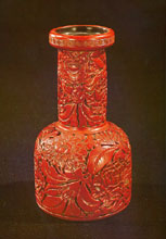 Carved red lacquer vase with floral motif