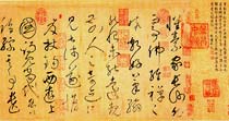 Huai-su was born in Chang-sha in Hunan province; his surname was Ch'ien. His style name was Ts'ang-chen; later he left his family to become a monk, taking the religious name Huai-su. He is most noted for a very rapid cursive style in which all strokes are connected. It is said his brush strokes are like a startled snake slithering through the grass, that they contain the strength and fury of the whirl-wind and driving rains.