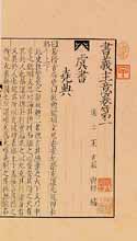 This collection of commentaries on the Book of Shang edited by Wang Ch'ung-yun during the Yuan dynasty was copied during the Ming by one Mao Chin, who prepared the woodblocks by tracing from the Yuan edition. Each folded half-page contains 14 lines of 23 characters, the text set off by a black border 18.8 x 11.9 cm with double lines on tire right and left sides. This edition opens with a preface written by Liu Chin-wen in A.D. 1348.