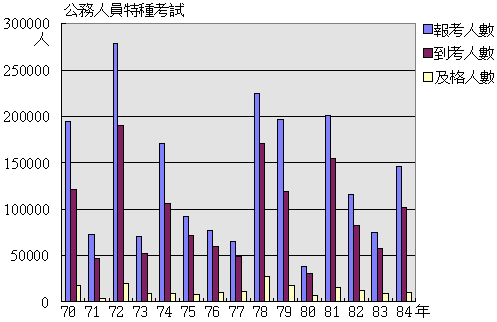 歷年公務人員特種考試報考到考暨及格人數統計表
