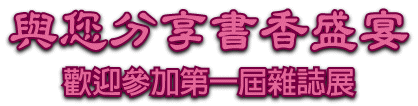 | 第一屆華文雜誌博覽會∼台北 | 1996年11月27日至12月1日 9:00∼17:00 | 台北世界貿易中心展覽大樓B區 |