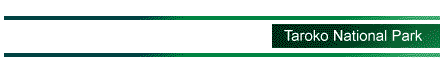 ![]() | Taroko National Park is famous for the sheer marble gorge which rises up from the Liwu River. The occasional temple, pagoda, or bridge along the river's route is a blend of natural beauty and Chinese design. The park, however, is much more than just the gorge and includes several mountain peaks climbing from sea level to over 3,000 meters. The result is a range of natural wonders, including cliffs, waterfalls, snow-covered mountains, and virgin forests. Among examples of hydrothermal activity is Wenshan Hot Springs, a natural spa. Here hot mineral waters flow from a crack in a cave wall, fill a small pool, and drain into the cold waters of the Liwu River. | |